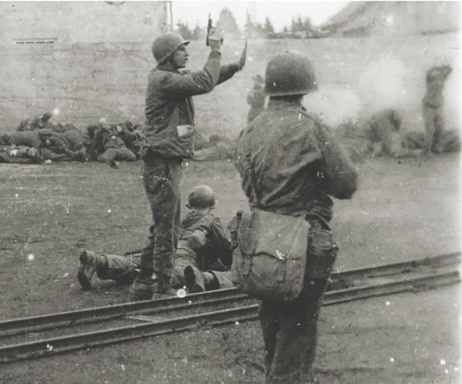 "...Una mujer auxiliar de la Wehrmacht fue lapidada y ahorcada; otro miembro de la SS fue colgado de una farola por los pies y quemado. Muchos testigos dieron fe de cómo se colgó y quemó a alemanes como 'antorchas vivientes', y no sólo a soldados sino también a chicos y chicas jóvenes..."